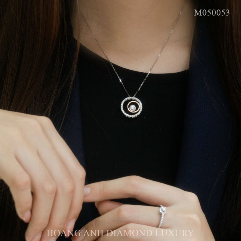 M050053 Mặt Vàng Trắng Hồng 14K Gắn Kim Cương Thiên Nhiên